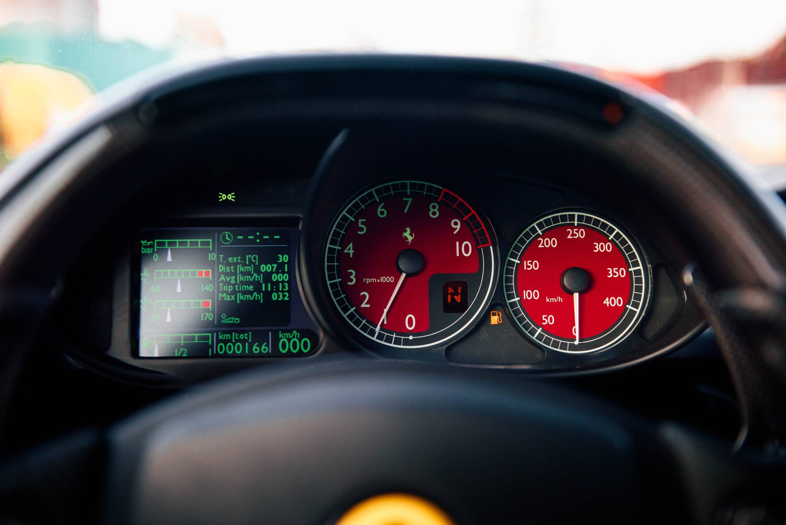 Delivery mileage. 165 Kilometres. Genuine One Owner. Finished in Rosso Corsa with Nero Leather Interior. Delivered New by Charles Pozzi. Complete with Original Owners Manual and Warranty Booklet, Leather Book Pouch, Tools, Keys and Car Cover.