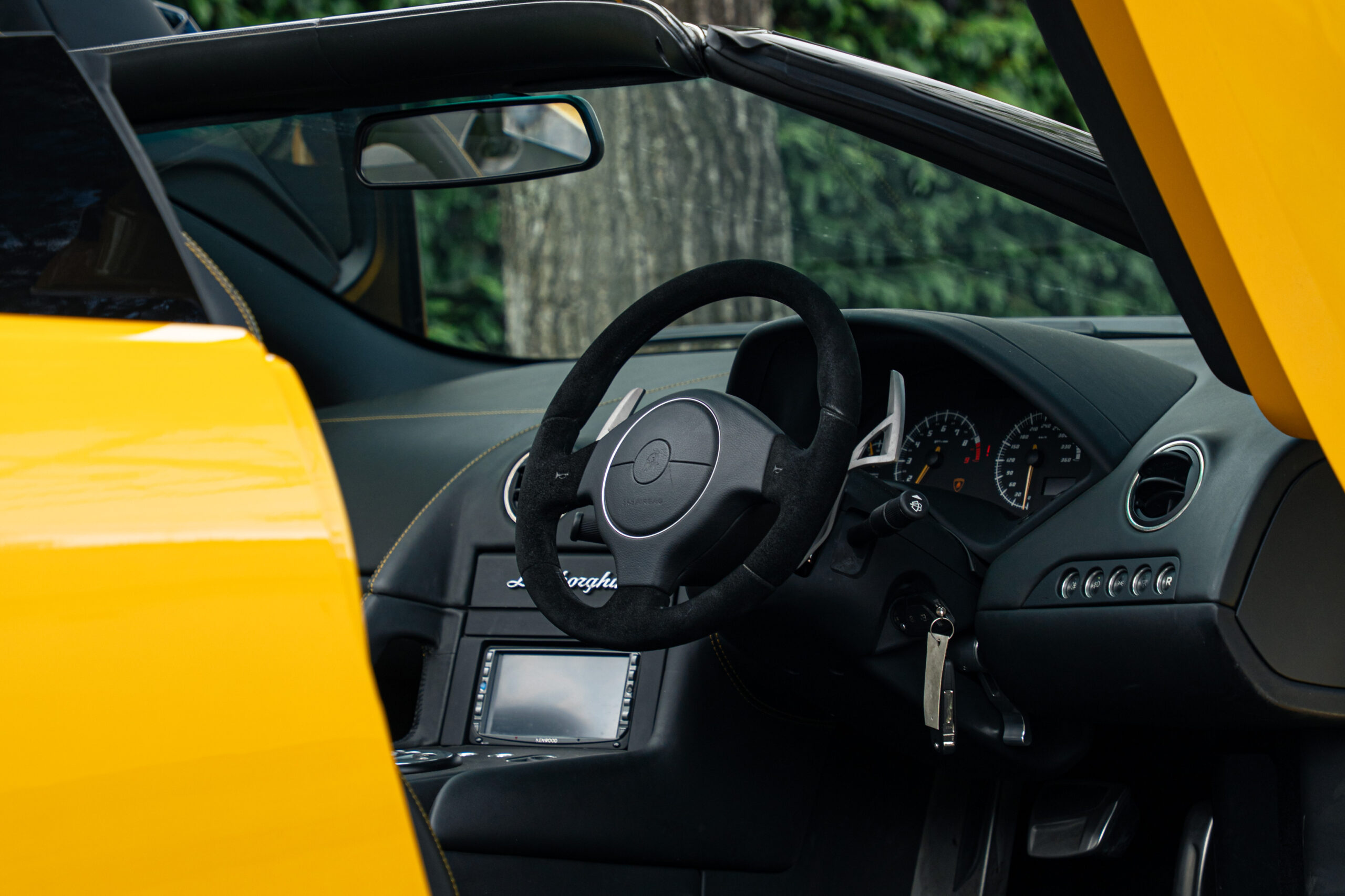 Australian Delivered via Lamborghini Melbourne. Finished in Giallo Orion over Black Leather. Travelled a mere 2,500 kilometres. Complete with Original Service and Owners Booklets. Full Lamborghini Service History. Recent Service. Accompanied by Car Charger, 2 Keys, Car Cover and Soft Top.