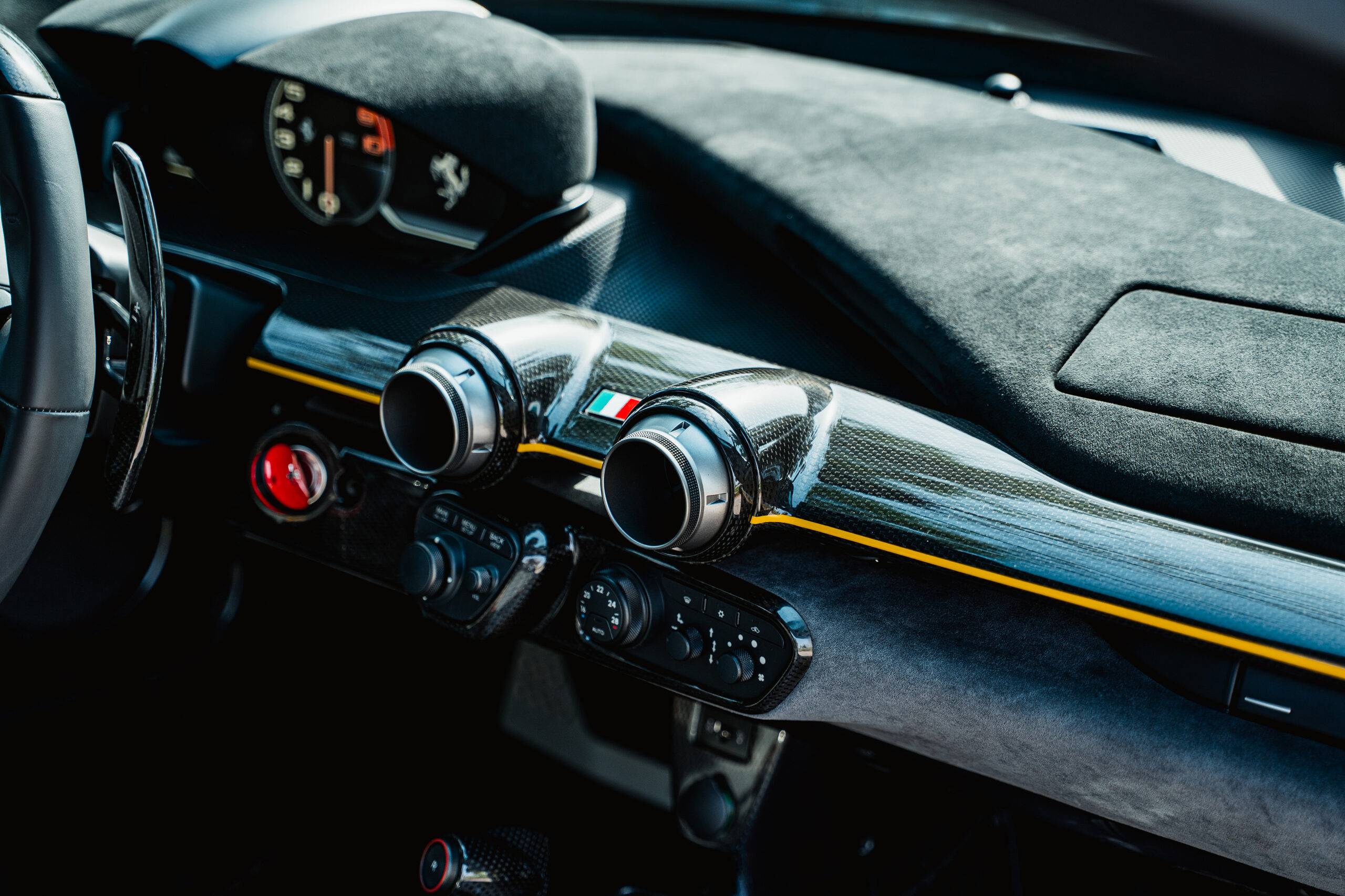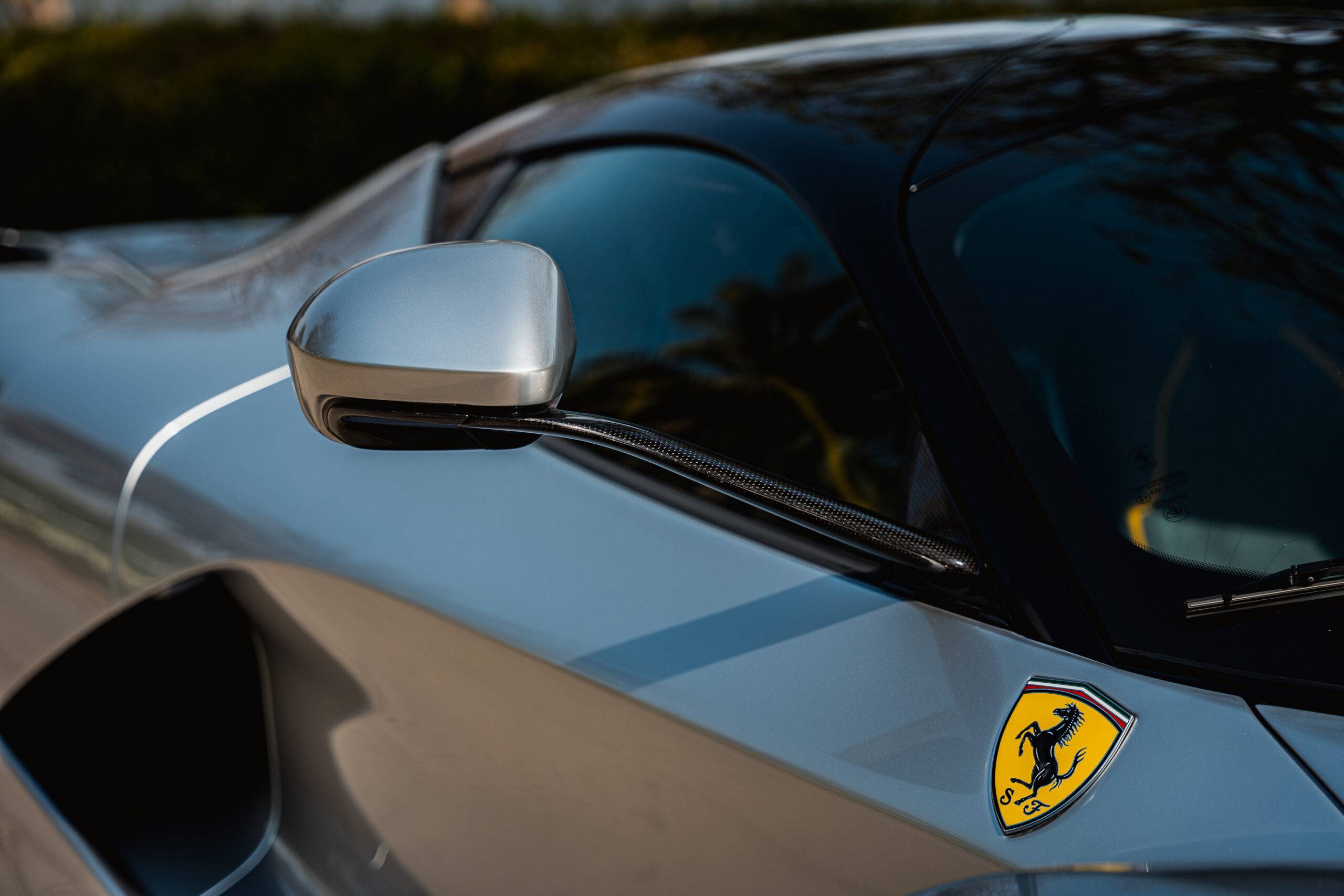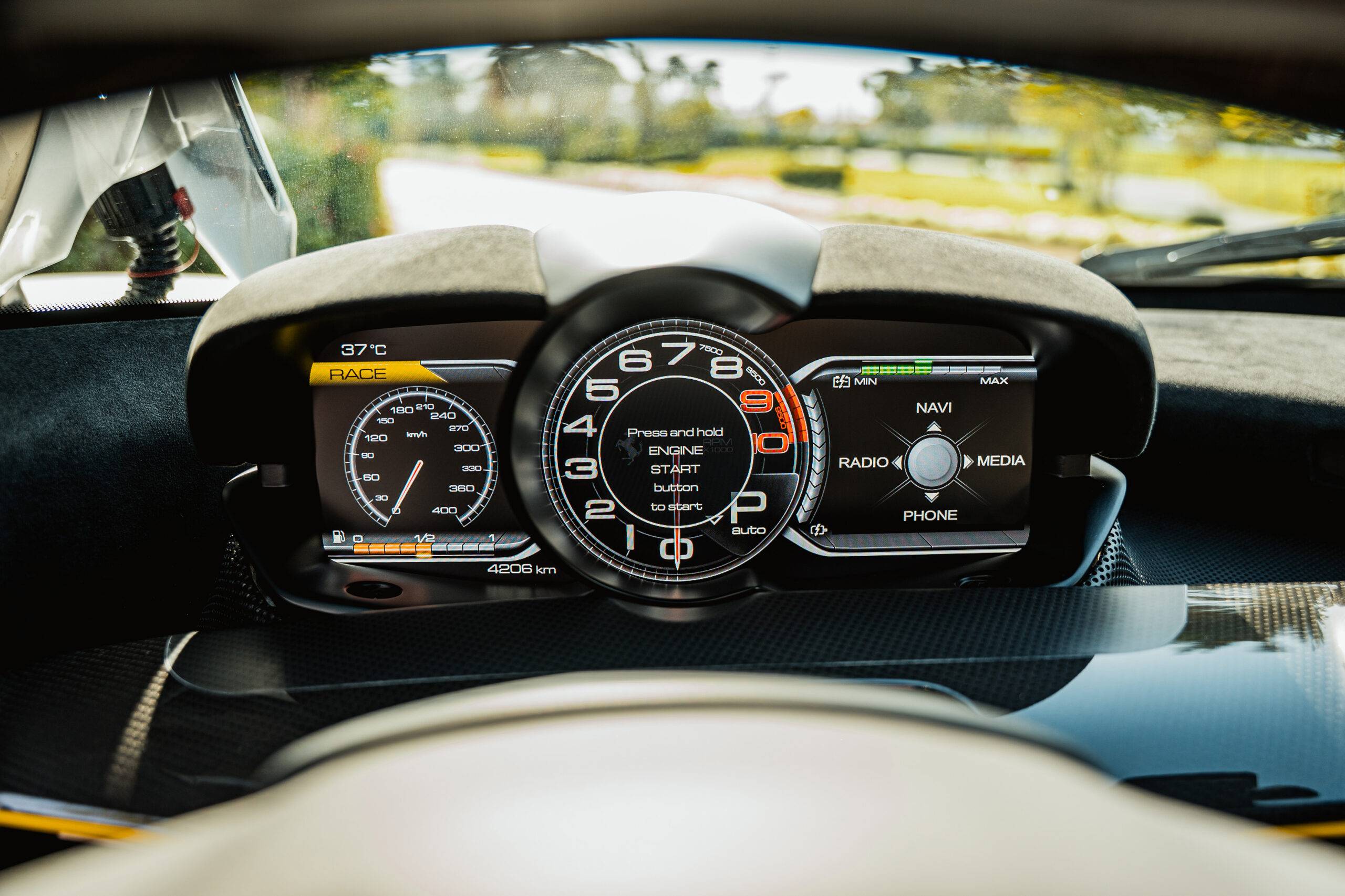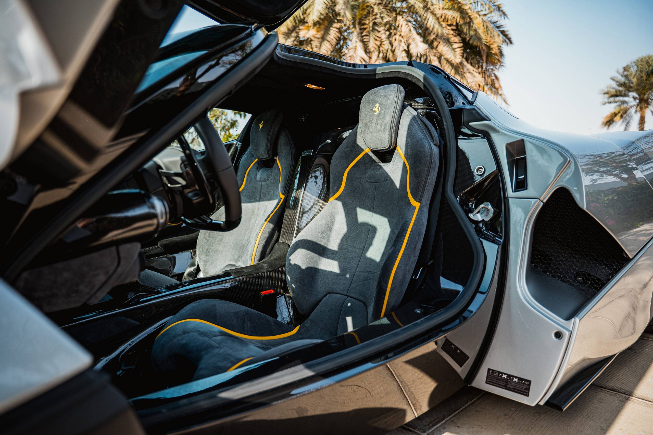 Finished in Argento Nurburgring over Charcoal / Giallo Alcantara Interior. Extensive carbon-fibre options. Primary Battery replaced. Travelled 4,100 kilometres. Complete with its yellow book, owners manual and warranty booklet.